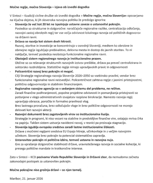Izjava Sinteze ob izvedbi dogodka v Mariboru: